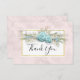 Um cartões de agradecimentos de casamento (ou outro evento). Projetado com uma foto de rosas azuis cercados por galhos e folhas florais e ricos. As bolas também formam uma coroa acima das rosas. Flores brancas e arcos azuis bonito e fita branca de legado também rodeiam os rosas. Um quadro branco com uma borda falsa de folha de ouro colocada sobre um fundo de mármore rosa empoeirado. Mensagem no verso que você pode personalizar com sua própria mensagem e nomes.