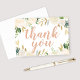Cartões de notas de agradecimento florais dobrados apresentam escrita estilosa em roteiro de letra à mão em rosa corado emoldurada por um design elegante de aquarela de rosas pintadas, flores ranunculus e folhas em tons neutros de branco, creme, rosa corado, ouro e verde.