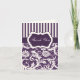 Este cartão de agradecimento vertical roxo berinjela, marfim e damasco rosa suave com listras combina com o convite de casamento mostrado abaixo.