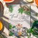 Expresse sua gratidão com estilo com este encantador cartão de agradecimento temático de safari. Com um bicho-preguiça brincalhão, uma girafa adorável, zebra e elefante cercados por verde tropical exuberante, este cartão é a maneira perfeita de agradecer aos seus convidados por tornar o chá de bebê ainda mais especial. A fonte elegante manuscrita adiciona um toque sincero a este charmoso design.