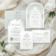 Unique hand drawn just married car and double heart couples monogram, with playful handwritten font in soft sage green, fun and elegant. Great personalized thank you cards for casual garden wedding, artistic boho beach wedding, and modern whimsical wedding.