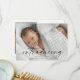 Script Apresentando Anúncio e Cartões de agradecimentos de Nascimento da Foto do Bebê. A parte de trás contém uma segunda foto e obrigado que você envia e que você pode personalizar ou remover se preferir escrever seu obrigado manualmente. Clique no botão personalizar/editar para personalizar este design.