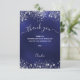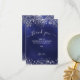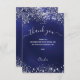 Fundo azul naval decorado com centelhas de brilho prateado falso. A cor azul é disforme. Roteiro grande à mão com floreios e texto: Obrigado. Personalize e adicione a sua nota de agradecimento e nome.