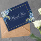 As rosas brancas e azuis elegantes decoram este belo cartões de agradecimentos floral da noite. A estrutura de folha de ouro falso em chic é acentuada por flores bonito de cor d'água indigo e por uma adorável cinta botânica amarela clara. Os nomes dos casais são escritos em clássicos caracteres cursivos brancos dentro da borda retangular deste cartão de inverno moderno.