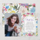 Quadro de Arco Floral script Cartão de Agradecimento com lindas flores silvestres do campo em roxo, lavanda, folhas verdes e mais, com um fundo elegante editável e pode adicionar sua foto.