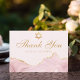 O cor-de-rosa-chic e o ouro enfeitam o lado deste cartões de agradecimentos moderno do Bat Mitzvah. Mazel Tov! Personalize com seu nome sob a Estrela de David. Cartões bonito para uma família judia na moda que celebra uma garota sendo chamada para a Torá.