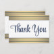 Cartão De Agradecimento Script Elegante de Stripes Douradas Azul do Marinh
