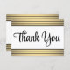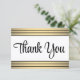 Cartão De Agradecimento Script Elegante de Stripes Douradas e Pretas Cláss
