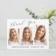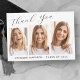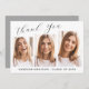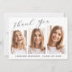 Este moderno e elegante cartão "Obrigado" com 3 fotografias, apresenta elementos design do texto moderno fundidos com um elegante roteiro de caligrafia. Suas fotos de formando são exibidas na frente do cartão enquanto a parte traseira do cartão oferece espaço de texto personalizado para um obrigado que você envia ou pode ser deixado como vazio se você quiser escrever sua mensagem manualmente. Os fundos são brancos na frente e cinzas prateadas na parte traseira ou personalizam-nos facilmente para as cores de sua escolha.