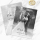 Um simples Cartões de agradecimentos de fotos de casamento em preto e branco. Na frente, há uma foto escondido e branca da noiva e do noivo se beijando em um parque. (Ele tem um filtro preto e branco; portanto, se você substituí-lo por uma foto colorida, sua foto ficará preta e branca). O texto é escrito a preto, na parte inferior, com as palavras "obrigado você" numa escrita moderna. No verso, há a mesma foto, mas transparente, descolorada para branco, e uma obrigado que você envia. A foto marcadora da noiva e do noivo beijando no parque é a IA gerada pelo Photoshop. Eu tenho o direito de usar minhas imagens geradas, inclusive para uso comercial.