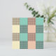A seamless plaid pattern with alternating pastel squares in turquoise, cream, and beige. Each square is filled with a crisscross grid design, creating a vintage and orderly feel.
