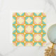 Seamless retro pattern with rounded squares in peach, teal, and cream hues, outlined in orange. Mid-century modern style, conveying a vintage, playful tone.