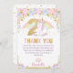 Cartão De Agradecimento Segundo aniversário Belo do Unicórnio Rainbow Flor