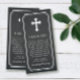 Cartões de agradecimentos de um serviço memorial com seu obrigado pessoal, você imprimiu uma mensagem em texto branco contra um fundo de carvão sob uma cruz branca.