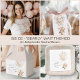 Espessura de 18 pt / Gramatura de 120 lb. Branco suave, textura delicada.