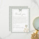 Featuring the signature vintage storybook aesthetic, each card showcases a soft sage green gingham pattern, a dainty watercolor bow, and the adorable mother goose and gosling illustration. The elegant arched frame and sophisticated script typography create a timeless, coquette-inspired look that works beautifully for gender-neutral, boy, or girl baby showers.