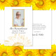 Mostre apreço aos seus convidados por lembrarem seu ente querido depois que eles passaram na Celebração do Life Memorial com a alegre Simpatia Funeral Gráfica Amarelo Flat Obrigado Cartão Nota. Este bonito e personalizado obrigado de homenagem à morte floral você apresenta uma fotografia floral digitalmente aprimorada de um girassol amarelo com fundo branco. Personalize-o com uma fotografia do falecido, das datas de nascimento e morte e da sua mensagem pessoal no verso.