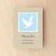 Uma pomba branca sobre um fundo azul cercado em branco é o ponto focal deste adorável obrigado de simpatia que você design. As palavras "Obrigado da família de (nome personalizado)" aparecem abaixo da pomba num fundo bronzeado. O verso da placa lisa apresenta a mesma cor azul usada na frente na qual são escritas algumas palavras de apreciação. Esta carta lisa é uma boa maneira de dizer obrigado pela sua simpatia. Palavras e design protegidas por simpatia de Copyright