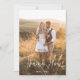Este cartões de agradecimentos de casamento simples e boho mostra sua foto de casamento na frente, com uma elegante tipografia de guião manuscrita e um pequeno coração desenhado pela mão. A parte de trás do cartão é preto e branco e tem espaço para uma mensagem pessoal, juntamente com outra foto de casamento.