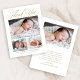 O cartão de agradecimento Simple Elegante Script Dourado 4 Foto Bebê apresenta três fotos do novo bebê, juntamente com caligrafia elegante, e todos os dados do bebê. O verso tem espaço suficiente para a sua nota de agradecimento.