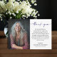A simple thank you card features a sample message you can use or change to your own words over a photo of your loved one. You can add a personal note on the back or delete our wording to leave blank. Beautiful for custom thank you notes for your celebration of life, funeral or memorial. MATCHING items in our collection.