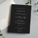 Elegante e elegante modelo de cartões de agradecimentos de casamentos negros minimalistas, apresentando um roteiro de caligrafia na moda. ++++++++++++ Fácil de personalizar com seus detalhes! O convite é adequado para casamentos formais de gravatas negras. Convidado e papel de carta disponíveis.+++++++++++++++++. Observe que a cor de fundo pode ser alterada para corresponder ao seu esquema de cor de casamento.
