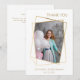 Frente: uma moldura de foto geométrica dourada falsa. Personalize e adicione uma foto, seu nome e data.