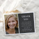 Um moderno cartões de agradecimentos de simpatia para enviar aos amigos e à família que vos mostraram amor e apoio durante o vosso tempo de luto. Apresentando uma imagem do seu amado membro da família na frente com um obrigado contemporâneo, a mensagem que pode ser facilmente personalizada. No verso está uma segunda fotografia com uma sobreposição e as palavras "na memória amorosa" em texto branco.