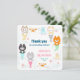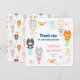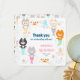 Um cartão de agradecimento simples com tema náutico para aniversário decorado com gatinhos sereia fofos.