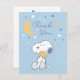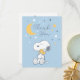 Send a personal and sincere thank you with this classic Peanuts Snoopy and Woodstock folded card. The front features the iconic "Over the Moon" illustration—Snoopy embracing Woodstock beneath a crescent moon and stars—set against a calming light blue background. The back left blank, offering generous space for a handwritten, personalized note of appreciation to each guest. This traditional format is a charming and nostalgic way to express gratitude after your gender-neutral or baby boy baby shower.