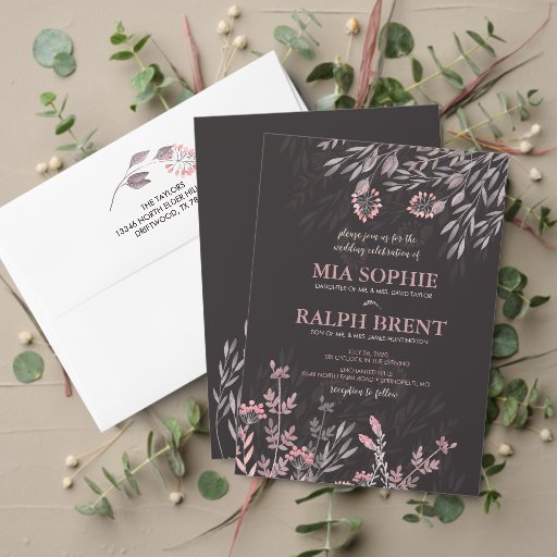 De bosques encantados e casamentos de contos de fadas sob o céu noturno. Uma coleção de casamento em aquarela em tons pálidos de rosa e marrom. Veja todas as outras peças correspondentes desta coleção.