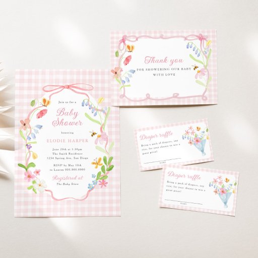Spring Floral Pink Gingham Baby ShowerCriado por MOONDAISY STUDIO