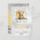 O convite e a coleção de acessórios do "Teddy Bear Twinkle Twinkle Little Star" é um encantador conjunto com uma deliciosa representação aquática de um ursinho de fofinho sentado em uma lua de ouro, acompanhado de estrelas prateadas e douradas. A design do "Obrigado" exude uma atmosfera carinhosa e sonhadora, perfeita para expressar seu apreço por presentes que celebram a chegada iminente de um pequeno precioso. O verso dos itens mostra uma paisagem estrelada captivante em tons prateados contra um pano de fundo de cinzas e água dourada. Adotar a magia desse chá de fraldas celestial com convites e acessórios cativantes.