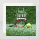 Tênis com raquete e bolas no Cartões de agradecimentos de grama verde