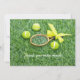 Tênis com raquete e bolas em Cartões de agradecimentos de grama verde