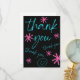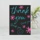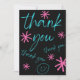 Say "thank you" for any occasion with this decorative black, bright blue and pink-colored card with pink stars and a smiley face.