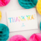 Agradeça os convidados com este cartão de agradecimento tie dye personalizado.