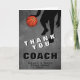 Cartões de agradecimentos de treinador do jogador de basquete moderno Chalkboard. O cartão tem uma silhueta preta de jogador de basquete com basquete no fundo do quadro de cinza. Cartão de excelente para agradecer aos treinadores desportivos, aos treinadores da equipe de segundo grau, à mãe ou ao técnico de pais, etc. Personalize qualquer texto no cartão. Adicione o nome do treinador, o nome da equipe e o ano. Diga obrigados de uma forma grande.