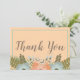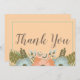 Mostrando a beleza dos trópicos, este adorável design apresenta um fundo de pêssego com "Obrigado" escrito em negrito fonte cursiva marrom. Modelos fáceis de preencher tornam a personalização simples. Personalize seu cartão de agradecimento hoje mesmo!