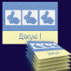 Três coelhos azuis bonitos em um cartões de agradecimentos. Д я у significa Obrigado na Ucrânia. Você pode clicar em Personalizar para mudar a palavra na frente, ou as palavras dentro, que atualmente dão a tradução em inglês da palavra ucraniana para Obrigado.