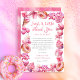 Sabemos que não pode esperar para ver seu doce bebê e este Chá de fraldas com tema doce "Obrigado" comemora você e seu pequeno em tudo que é glória rosa! Uma deliciosa trama de padaria e um quadro cor-de-rosa doce rodeia os detalhes do seu chá de uma forma tão elegante. A parte de trás apresenta uma espiral de algodão doce para cima desta design mais doce do que doce.