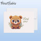 Um cartão delicado de agradecimento de chá de bebê com um gráfico de desenho animado de um ursinho fofo rodeado por um toque sutil de folhagem em tons suaves de verde, projetado com um fundo de cor rosa muito suave. O verso do cartão inclui o texto "Obrigado por se juntar a nós no nosso chá de bebê! Significou o mundo ter você lá" junto com um toque encantador e suave de flores vermelhas. Personalize com seu próprio texto e/ou nome. O design geral é suave, convidativo e perfeito para expressar gratidão de forma calorosa e sincera.