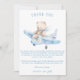 O adorável ursinho de pelúcia voando num avião. Os textos são perfeitamente editáveis.