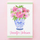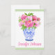 Cartão De Agradecimento Vaso de Porcelana com Peônias Rosas Personalizado