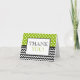 Cartões de agradecimento elegantes e para todas as ocasiões com bolinhas brancas sobre verde no topo e um padrão xadrez de zigue-zague preto e branco na parte inferior. O interior pode ser personalizado com sua própria mensagem personalizada ou pode ser facilmente excluído para deixar o cartão em branco para escrever sua mensagem à mão.