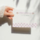 Celebre o primeiro aniversário de sua garota descolada com nossos cartões de agradecimento planos pós-aniversário 'UMA GAROTA RADICAL' com xadrez lilás. Este design apresenta um rosto feliz fácil de amar com óculos de signo da paz e padrões xadrez ondulados lilás.