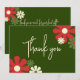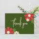 Cartões de agradecimentos Vermelho Floral Moderno, Verde e Creme. Pode ser personalizado. Apresenta flores estéticas dos anos 70 e 60 e um aspecto mínimo e otimizado. Com letras amigáveis, que podem ser personalizadas. Por Kierkegaard Design Studio.