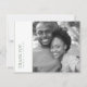Esta elegante coleção de casamento usa uma paleta colorida impressionante, incluindo fuchsia fedora, verde limão e algodão doce cor-de-rosa, para criar papelaria correspondente e suprimentos de festas para seu dia especial. Os florais de aquarelas e os traçados de tinta cintilantes proporcionam um fundo de captura de olhos. Script manuscrito emparelhado com fonte serif clássica empresta um toque moderno. O cartão 'Obrigado' do casamento mostrado aqui fornece uma modelo para adicionar facilmente sua própria foto e mensagem pessoal. Procure ID954 para ver outras peças e opções de cor para este conjunto.