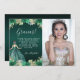 Floral Emerald Green Princess Gown Gress Glitter Sparkle 15 de Aniversário Foto Quinceanera Cartões de agradecimentos