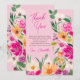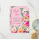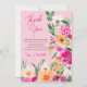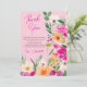 Expresse sua gratidão com esta ilustração elegante de flores brilhantes e ousadas da primavera e verão com lindas flores silvestres superdimensionadas e script pincel em cartão de agradecimento de chá de noiva com tipografia de caligrafia moderna com flores neon rosa, laranja, verde e amarelo em rosa pastel retrô.